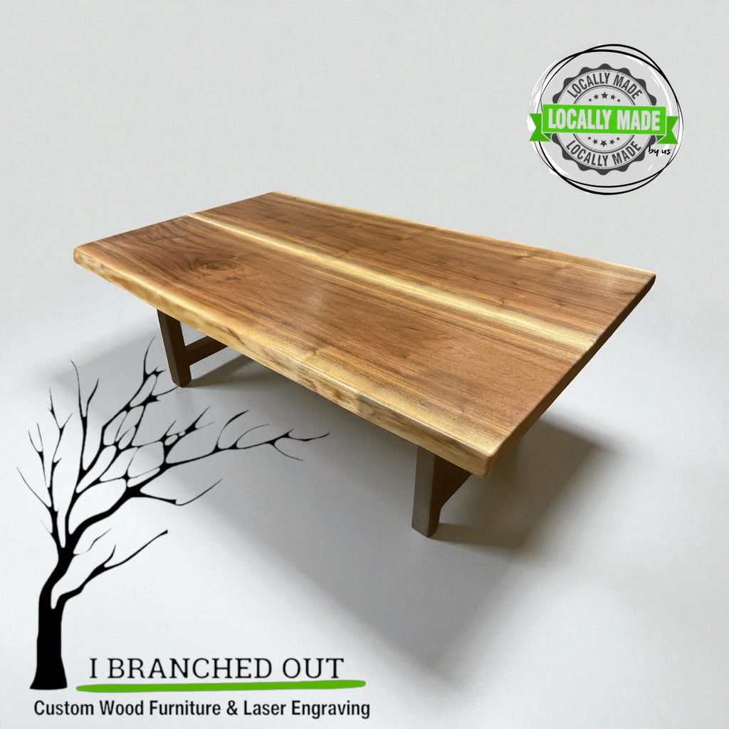 These handcrafted pieces are full of rich dark hues and contrasting tones on the lighter side, finished off with a soft live edge! This set contains a coffee table & 2 side tables consisting of all wood construction, all locally made by us. These tables would fit perfectly in front of a comfy sofa and, beside a couple of occasional chairs in your favourite room!